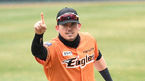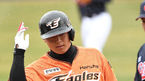[OSEN=대전, 최규한 기자] 27일 대전 한화생명이글스파크에서 ‘2021 KBO리그’ 한화 이글스와 롯데 자이언츠의 시범경기가 열렸다.2회말 1사 1루 상황 한화 임종찬이 안타를 날리고 1루에 안착해 세리머니를 하고 있다. / dreamer