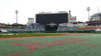 [OSEN=수원,박준형 기자] 27일 오후 수원kt위즈파크에서 펼쳐질 예정이었던 2021시즌 프로야구 kt 위즈와 NC 다이노스의 시범경기가 우천취소됐다.방수포 덮힌 야구장. / soul1014@osen.co.kr