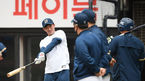 [OSEN=수원,박준형 기자] 27일 오후 수원kt위즈파크에서 2021시즌 프로야구 kt 위즈와 NC 다이노스의 시범경기가 진행된다.경기에 앞서 NC 이명기가 권희동과 타격자세 관해 장난치다 이동욱 감독의 눈과 마주치고 있다. / soul1014@osen.c