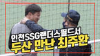 [OSEN=인천, 이대선 기자] 27일 인천SSG랜더스필드에서 2021년 KBO리그 시범경기 SSG 랜더스와 두산 베어스의 경기가 열렸다.경기에 앞서 SSG 최주환이 두산 김태형 감독을 비롯한 선수들과 반가운 인사를 나누고 있다. /sunday@osen.co.kr