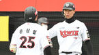 [OSEN=수원, 김성락 기자] 28일 오후 경기도 수원시 수원kt위즈파크에서 2021시즌 프로야구 KT 위즈와 NC 다이노스의 시범경기가 진행됐다.8회말 무사 2루 KT 문상철이 2점 홈런을 날린 뒤 홈에서 박승욱과 기쁨을 나누고 있다./ksl0919@os