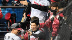 [OSEN=잠실, 지형준 기자] 28일 오후 서울 잠실구장에서 2021 KBO리그 시범경기 LG 트윈스와 삼성 라이온즈의 경기가 열렸다.5회말 1사에서 역전 솔로포를 날린 LG 김민성이 더그아웃에서 동료선수들과 기뻐하고 있다. /jpnews@osen.co.kr