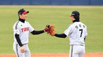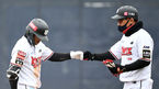[OSEN=수원, 김성락 기자] 28일 오후 경기도 수원시 수원kt위즈파크에서 2021시즌 프로야구 KT 위즈와 NC 다이노스의 시범경기가 진행됐다.4회말 만루 KT 조용호가 싹슬이 3타점 적시 2루타를 날린 뒤 박정환 코치와 하이파이브를 하고
