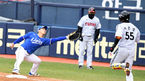 [OSEN=잠실, 지형준 기자] 28일 오후 서울 잠실구장에서 2021 KBO리그 시범경기 LG 트윈스와 삼성 라이온즈의 경기가 열렸다.3회말 2사에서 삼성 이성규가 LG 채은성의 3루땅볼에 이원석의 송구를 놓치고 있다. /jpnews@osen.co.kr