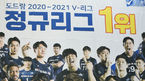 [OSEN=장충, 민경훈 기자] 29일 오후 서울 장충체육관에서 도드람 2020-2021 V리그 프로배구 남자부 우리카드와 대한항공의 경기가 열렸다. 이 경기에서 대한항공이 우리카드에 세트스코어 3-1로 승리를 거두며 정규리그 우승을 확정