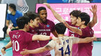 [OSEN=장충, 민경훈 기자] 29일 오후 서울 장충체육관에서 도드람 2020-2021 V리그 프로배구 남자부 우리카드와 대한항공의 경기가 열렸다.3세트를 따낸 대한항공 선수들이 기뻐하고 있다. / rumi@osen.co.kr