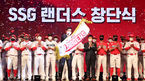 [OSEN=지형준 기자] 30일 오후 서울 소공동 웨스틴조선호텔에서 SSG 랜더스 창단식이 열렸다.SSG 정용진 구단주와 선수단이 파이팅을 외치고 있다. /jpnews@osen.co.kr