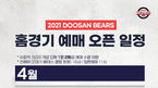 [OSEN=이후광 기자] 두산 베어스가 30일 홈 개막2연전 입장권 예매 일정을 확정 발표했다.오는 4월3일~4일까지 편성된KIA와의 주말 홈2연전은3월31일과4월1일에 각각 입장권 예매가 가능하다. 이어4월6일부터8일까지 열리는 삼성과의