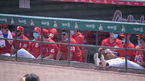 [OSEN=잠실, 이대선 기자] 30일 서울 잠실야구장에서 2021년 KBO리그 LG 트윈스와 SSG 랜더스의 시범경기가 열렸다.5회초 1사 1루에서 SSG 박성한이 우월 투런 홈런을 치고 더그아웃에서 동료들의 축하를 받고 있다. /sunday@osen.co.kr