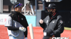 [OSEN=대전, 곽영래 기자] 30일 대전 한화생명이글스파크에서 한화 이글스와 키움 히어로즈의 시범경기가 열렸다.1회말 무사 3루 키움 스미스와 프레이타스가 이야기를 나누고 있다. /youngrae@osen.co.kr