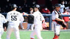 [OSEN=잠실, 이대선 기자] 30일 서울 잠실야구장에서 2021년 KBO리그 LG 트윈스와 SSG 랜더스의 시범경기가 열렸다.5회초 1사 1루에서 SSG 박성한이 우월 투런 홈런을 치고 홈에서 이흥련과 하이파이브를 하고 있다. /sunday@osen.co.kr