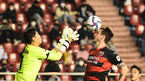 [OSEN=포항, 지형준 기자] 2일 오후 포항스틸야드에서 열린 ‘하나원큐K리그1 2021’7라운드 포항 스틸러스와 대구FC의 경기에서 0대0 무승부를 기록했다.후반 포항 타쉬에 앞서 대구 최영은 골키퍼가 공중볼을 따내고 있다. /