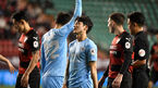 [OSEN=포항, 지형준 기자] 2일 오후 포항스틸야드에서 열린 ‘하나원큐K리그1 2021’7라운드 포항 스틸러스와 대구FC의 경기에서 0대0 무승부를 기록했다.후반 대구 세르지뉴가 앉아서 프리킥 벽을 준비하다 주심의 제지를 받