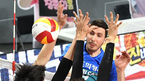 [OSEN=장충, 최규한 기자] 2일 오후 서울 장충체육관에서 ‘도드람 2020-2021 V-리그’ 남자부 우리카드와 한국전력의 경기가 열렸다.2세트, 한국전력 박철우와 공재학이 득점에 기뻐하고 있다. / dreamer@osen.co.kr