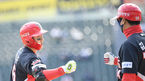 [OSEN=잠실, 곽영래 기자] 4일 오후 서울 잠실야구장에서 ‘2021 신한은행 SOL KBO 리그’ 두산 베어스와 KIA 타이거즈의 경기가 열렸다.3회초 2사 KIA 최원준이 3루타를 때린 뒤 김종국 코치와 주먹 세레머니를 하고 있다. /youngrae@