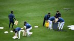 [OSEN=창원, 지형준 기자] 4일 오후 창원 NC파크에서 ‘2021 신한은행 SOL KBO 리그’ NC 다이노스와 LG 트윈스의 경기가 열린다.NC 관계자들이 그라운드의 물기를 제거하고 있다. /jpnews@osen.co.kr
