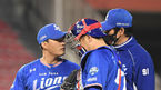 [OSEN=잠실,박준형 기자] 6일 오후 서울 잠실구장에서 ‘2021 신한은행 SOL KBO리그’ 두산 베어스와 삼성 라이온즈의 경기가 진행됐다.8회말 1사 1,2루 삼성 오승환이 교체되어 정현욱 투수 코치와 이야기를 나누고 있다. / soul1