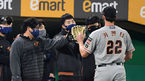 [OSEN=인천, 이대선 기자] 6일 인천 SSG 랜더스필드에서 ’2021 신한은행 SOL KBO 리그' SSG 랜더스와 한화 이글스의 경기가 열렸다.7회초 1사에서 SSG 박종훈이 호수비를 펼친 최지훈을 향해 손을 들어 고마움을 표하고 있다. /sunday@os
