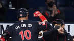 [OSEN=잠실,박준형 기자] 6일 오후 서울 잠실구장에서 ‘2021 신한은행 SOL KBO리그’ 두산 베어스와 삼성 라이온즈의 경기가 진행됐다.4회말 두산 선두타자 박건우가 솔로홈런을 날리고 동료들의 축하를 받고 있다. / soul1014@os