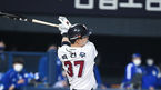 [OSEN=잠실,박준형 기자] 6일 오후 서울 잠실구장에서 ‘2021 신한은행 SOL KBO리그’ 두산 베어스와 삼성 라이온즈의 경기가 진행됐다.4회말 두산 선두타자 박건우가 솔로홈런을 날리고 있다. / soul1014@osen.co.kr
