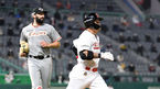 [OSEN=창원, 민경훈 기자] 6일 오후 창원 NC파크에서 ‘2021 신한은행 SOL KBO 리그’ NC 다이노스와 롯데 자이언츠의 경기가 열렸다.3회초 2사 주자 만루 롯데 이대호가 좌월 만루 홈런을 날린 후 홈을 밟으며 기뻐하고 있다./rumi@