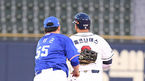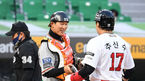 [OSEN=인천, 이대선 기자] 6일 인천 SSG 랜더스필드에서 ’2021 신한은행 SOL KBO 리그' SSG 랜더스와 한화 이글스의 경기가 열렸다.1회말 2사에서 한화 포수 이해창이 파울을 치고 홈으로 향하는 SSG 추신수에게 배트를 건네고 있다. /