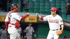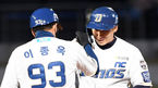 [OSEN=잠실,박준형 기자] 6일 오후 서울 잠실구장에서 ‘2021 신한은행 SOL KBO리그’ 두산 베어스와 삼성 라이온즈의 경기가 진행됐다.9회초 무사 1루 삼성 피렐라가 안타를 날리고 강명구 1루 코치와 하이파이브를 하고 있다.