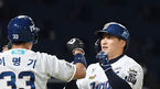 [OSEN=창원, 민경훈 기자] 7일 오후 창원 NC파크에서 ‘2021 신한은행 SOL KBO 리그’ NC 다이노스와 롯데 자이언츠의 경기가 열렸다.7회말 무사 주자 1,2루 NC 나성범이 역전 우월 스리런 홈런을 날린 후 홈을 밟으며 양의지와 하