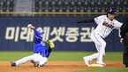 [OSEN=잠실, 이대선 기자] 7일 서울 잠실야구장에서 ’2021 신한은행 SOL KBO 리그' 두산 베어스와 삼성 라이온즈의 경기가 열렸다.6회초 1사 1,3루에서 삼성 김헌곤의 내야땅볼 때 런다운에 걸린 3루주자 구자욱이 태그를 피하고