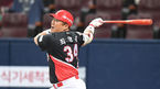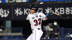 [OSEN=잠실, 이대선 기자] 7일 서울 잠실야구장에서 ’2021 신한은행 SOL KBO 리그' 두산 베어스와 삼성 라이온즈의 경기가 열렸다.3회말 2사 1루에서 두산 김재환이 중전 안타를 치고 있다. /sunday@osen.co.kr