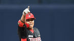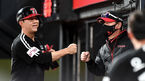 [OSEN=수원, 최규한 기자] 7일 오후 수원 KT위즈파크에서 ‘2021 신한은행 SOL KBO리그’ KT 위즈와 LG 트윈스의 경기가 열렸다.3회초 2사 1, 2루 상황 LG 이천웅의 선제 1타점 2루타 때 홈을 밟은 김민성이 류지현 감독과 인사를 나
