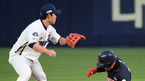 [OSEN=잠실, 이대선 기자] 7일 서울 잠실야구장에서 ’2021 신한은행 SOL KBO 리그' 두산 베어스와 삼성 라이온즈의 경기가 열렸다.1회말 무사 1,2루에서 삼성 김상수가 두산 박건우를 병살타로 처리하고 있다. /sunday@osen.co.kr