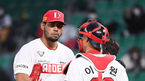 [OSEN=인천,박준형 기자] 7일 인천 SSG 랜더스필드에서 ’2021 신한은행 SOL KBO 리그' SSG 랜더스와 한화 이글스의 경기가 열렸다.2회초 2사 1,2루 SSG 폰트가 이재원 포수와 마운드에서 이야기를 나누고 있다./ soul1014@osen.co.kr