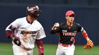 [OSEN=창원, 민경훈 기자] 8일 오후 창원 NC파크에서 ‘2021 신한은행 SOL KBO 리그’ NC 다이노스와 롯데 자이언츠의 경기가 열렸다.5회말 NC 선두타자 김태군이 좌월 솔로 홈런을 날린 후 그라운드를 돌고 있다./rumi@osen.co.kr