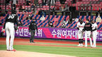 [OSEN=수원, 지형준 기자] 8일 오후 수원 KT위즈파크에서 ‘2021 신한은행 SOL KBO리그’ KT 위즈와 LG 트윈스의 경기가 열렸다.3회말 1사에서 LG 이상영이 KT 알몬테를 몸에 맞는 볼로 출루시키고 모자를 벗어 인사를 하고 있다. /j