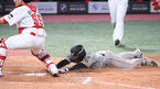 [OSEN=잠실, 김성락 기자] 8일 오후 서울 잠실야구장에서 ‘2021 신한은행 SOL KBO 리그’두산 베어스와 삼성 라이온즈의 경기가 열렸다.3회초 무사 2루 삼성 박해민의 1타점 적시타 때 2루 주자 구자욱이 홈으로 슬라이딩하며