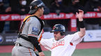 [OSEN=인천,박준형 기자] 8일 인천 SSG 랜더스필드에서 ’2021 신한은행 SOL KBO 리그' SSG 랜더스와 한화 이글스의 경기가 열렸다.1회말 1사 2,3루 SSG 최정의 선취점 희생플라이때 3루 주자 로맥이 태그업 시도해 선취득점을 올리고