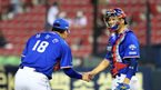 [OSEN=잠실, 김성락 기자] 삼성 라이온즈가 길었던 4연패를 끊어내고 두산을 상대로 6-1로 승리하며 첫 승을 기록했다.승리가 확정된 순간 삼성 심창민과 강민호가 기쁨을 나누고 있다./ksl0919@osen.co.kr