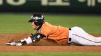 [OSEN=부산, 민경훈 기자] 9일 오후 부산 사직야구장에서 ‘2021 신한은행 SOL KBO 리그’ 롯데 자이언츠와 키움 히어로즈의 경기가 열렸다.6회초 1사 키움 박동원이 중견수 뒤 2루타를 날리며 타구의 궤적을 바라보고 있다./rumi@