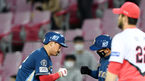 [OSEN=잠실, 최규한 기자] 9일 오후 서울 잠실야구장에서 ‘2021 신한은행 SOL KBO리그’ LG 트윈스와 SSG 랜더스의 경기가 열렸다.4회말 1사 1루 상황 LG 김현수가 안타를 날리고 1루에 안착해 김호 코치와 인사를 나누고 있다. / d