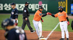 [OSEN=잠실, 최규한 기자] 9일 오후 서울 잠실야구장에서 ‘2021 신한은행 SOL KBO리그’ LG 트윈스와 SSG 랜더스의 경기가 열렸다.2회말 1사 만루 상황 LG 홍창기의 달아나는 2타점 적시타 때 홈을 밟은 유강남이 더그아웃 동료들