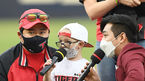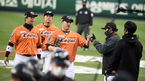 [OSEN=광주, 곽영래 기자] 9일 광주-기아 챔피언스필드에서 ‘2021 신한은행 SOL KBO 리그’ KIA 타이거즈와 NC 다이노스의 경기가 열렸다.시구와 시포를 마친 브룩스의 아들 웨스틴이 브룩스가 이야기를 나누고 있다. /youngrae@ose