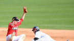 [OSEN=광주, 곽영래 기자] 10일 광주-기아 챔피언스필드에서 ‘2021 신한은행 SOL KBO 리그’ KIA 타이거즈와 NC 다이노스의 경기가 열렸다.1회초 1사 KIA 임기영이 NC 이명기의 타구를 잡아내고 있다. /youngrae@osen.co.kr