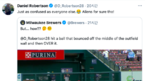 [OSEN=길준영 기자] 메이저리그에서 보기 힘든 신기한 타구가 나왔다.메이저리그 공식매체 MLB.com은 지난 11일(한국시간) 열린 밀워키 브루어스와 세인트루이스 카디널스의 경기에서 나온 다니엘 로버트슨의 2루타를 소개했다.로