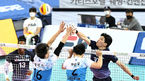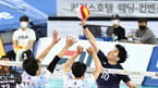 [OSEN=인천, 최규한 기자] 12일 오후 인천 계양체육관에서 ‘도드람 2020-2021 V-리그’ 남자부 챔피언결정 2차전 대한항공과 우리카드의 경기가 열렸다.2세트, 대한항공 곽승석의 공격을 우리카드 최석기-한성정이 블로킹 시