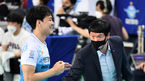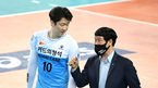 [OSEN=인천, 최규한 기자] 12일 오후 인천 계양체육관에서 ‘도드람 2020-2021 V-리그’ 남자부 챔피언결정 2차전 대한항공과 우리카드의 경기가 열렸다.2세트, 우리카드 신영철 감독이 서브를 준비하는 나경복과 대화를 나누