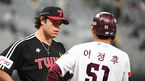 [OSEN=고척,박준형 기자] 13일 오후 서울 고척동 고척스카이돔에서 '2021 프로야구 KBO리그' 키움 히어로즈와 LG 트윈스의 경기가 진행됐다.7회말 무사 2루 키움 이정후가 1타점 적시타를 날린뒤 1루수 라모스와 이야기를 나누고 있다.