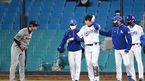 [OSEN=잠실, 최규한 기자] 13일 오후 서울 잠실야구장에서 ‘2021 신한은행 SOL KBO리그’ 두산 베어스와 KT 위즈의 경기가 열렸다.4회초 2사 만루 상황 KT 박경수가 달아나는 좌월 만루포를 날리고 더그아웃 동료들과 인사를 나