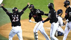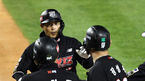 [OSEN=잠실, 최규한 기자] 13일 오후 서울 잠실야구장에서 ‘2021 신한은행 SOL KBO리그’ 두산 베어스와 KT 위즈의 경기가 열렸다.4회초 2사 만루 상황 KT 박경수가 달아나는 좌월 만루포를 날리고 홈을 밟으며 동료들과 인사를