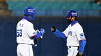 [OSEN=대구, 이대선 기자] 14일 오후 대구 삼성라이온즈파크에서 ’2021 신한은행 SOL KBO 리그' 삼성 라이온즈와 한화 이글스의 경기가 열렸다.6회말 1사에서 삼성 이학주가 우전 2루타를 치고 강명구 코치와 하이파이브를 하고 있